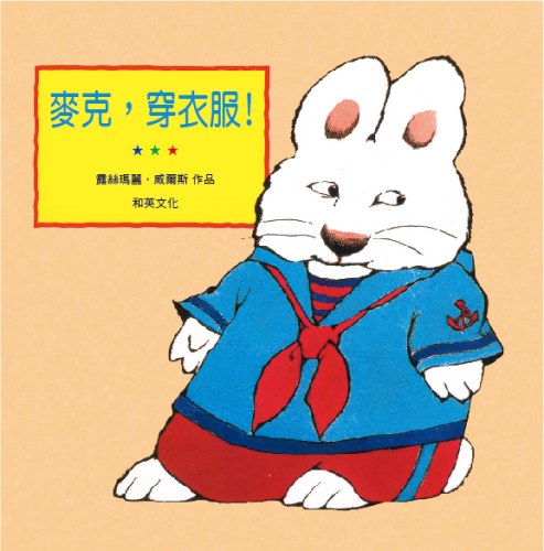 喝下午茶的時間到了, 璐璐幫弟弟麥克穿上新衣服。 來,先伸腳進長褲, 再伸手穿襯衫……。 「麥克,不要亂動」, 「穿好了,快走吧!」 可是,麥克想要自己穿衣服……。