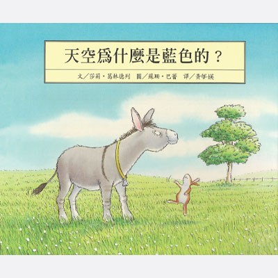 《天空為什麼是藍色的?》是以行動緩慢、狀似沉穩的老驢來代表大人,以活蹦亂跳、動作靈敏的小兔子來代表小孩,表現大人與孩子對學習新事物的方式與看法上的差異,我個人認為在動物角色的選取上相當貼切。同時,負責本書文字的莎莉‧葛林德列顯然是一位非常了解孩子特質的作家,她把孩子坐不住的個性、跳躍式的思考方式、對新事物的好奇與探究,以及興奮高昂的口語表達,捕捉得相當傳神。