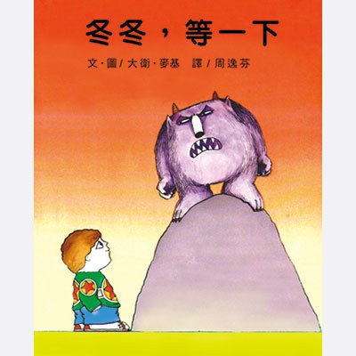 【書評】 《冬冬,等一下》 趙國宗(圖畫書畫家) 和英出版社選擇很多幽默有趣的圖畫書,到幼稚園讀給小朋友聽,觀察、記錄小孩的反應,挑選計劃出版了一系列幼兒幽默的圖畫書,並附有一本幼兒閱讀的幽默研究用的小冊子,很值得肯定與鼓勵。善於創作幽默有趣的繪本是大衛‧麥基的專長,《冬冬,等一下》是其名作之一。故事主角是小男孩冬冬,渴望家人的關心,但大人的回應常常是「等一下,現在沒空」,故事就應用普遍的這種問題親子關係來編故事,故事中一再重複「冬冬,等一下,我現在沒空。」文字簡鍊而富節奏,並合乎幼兒的口味。